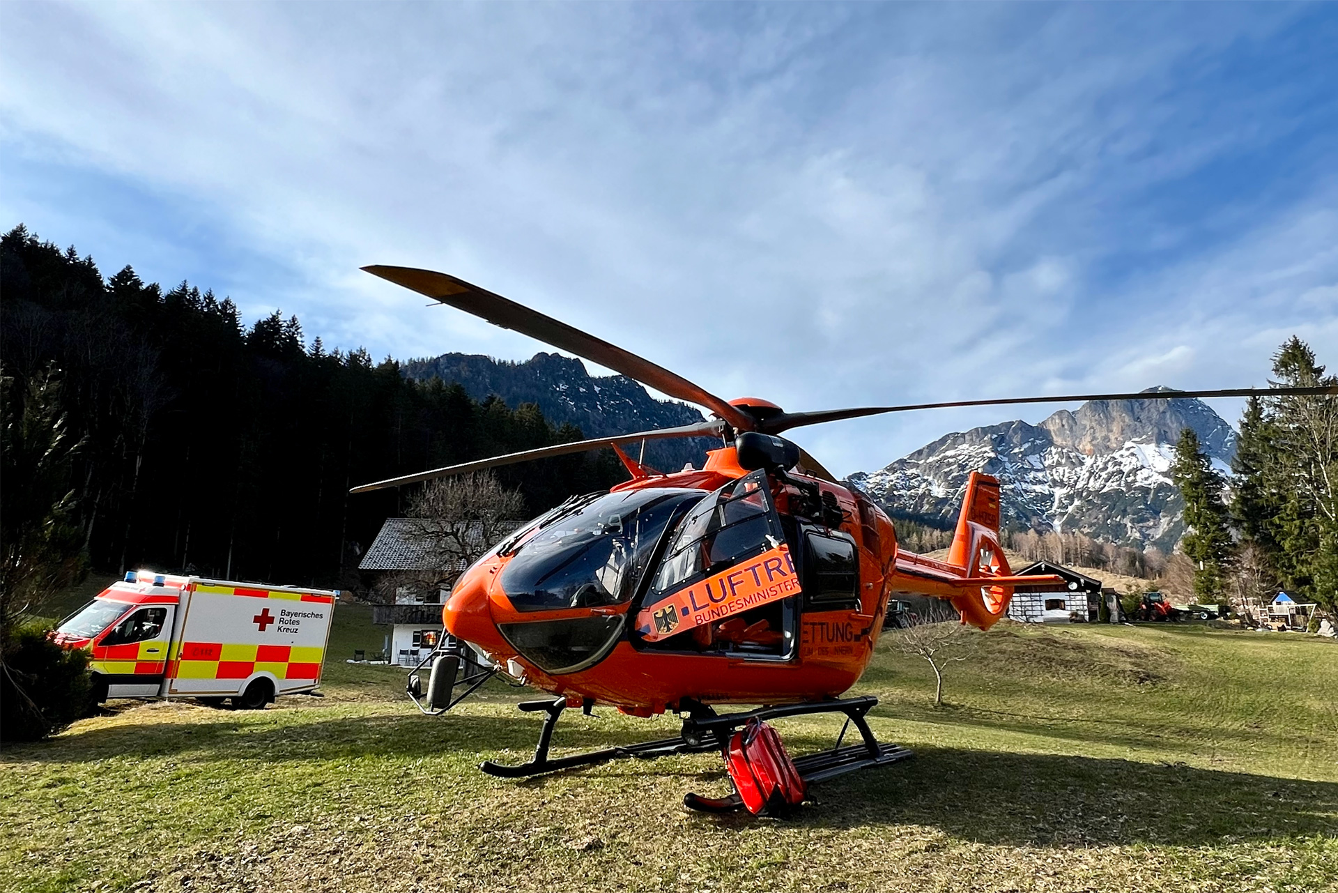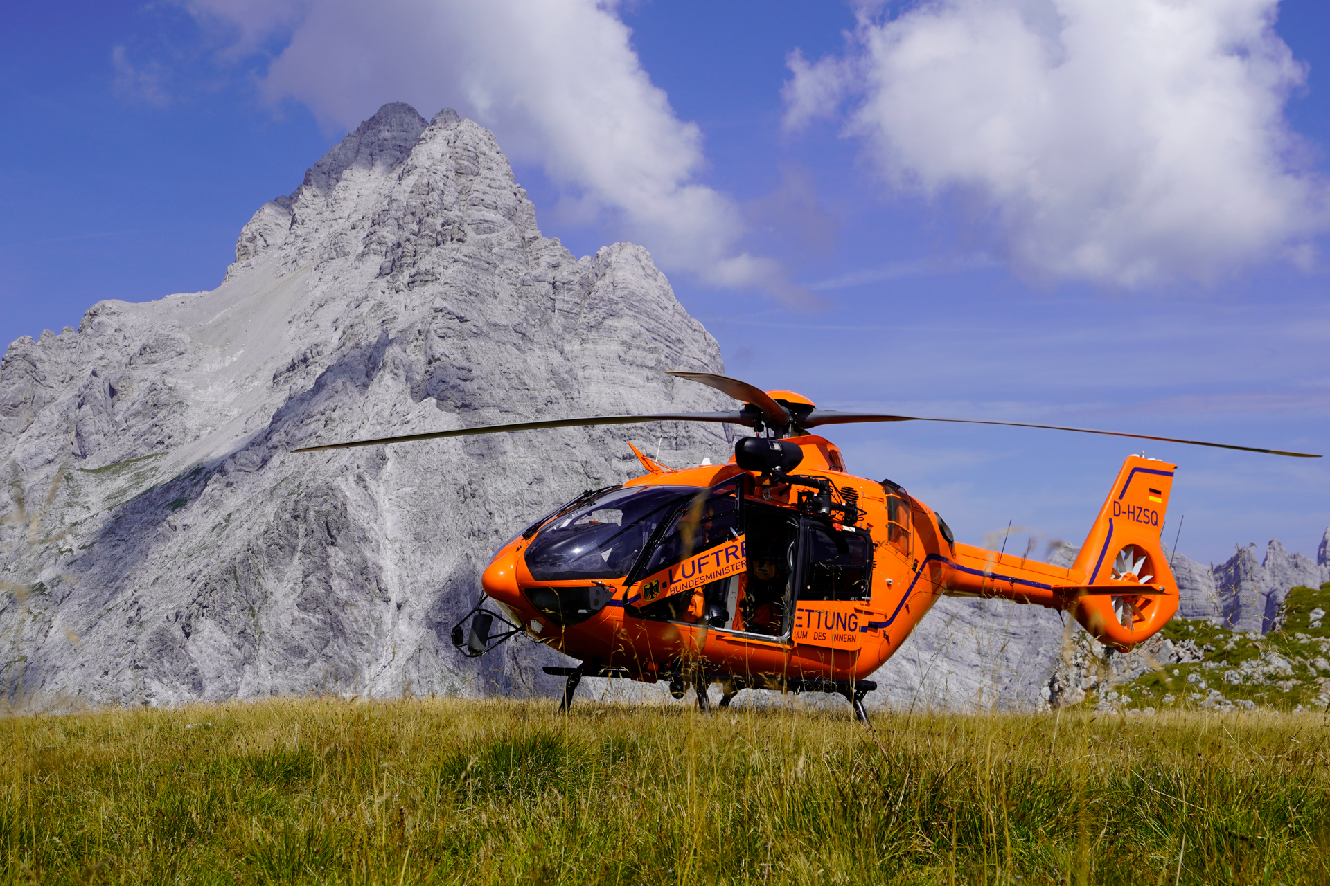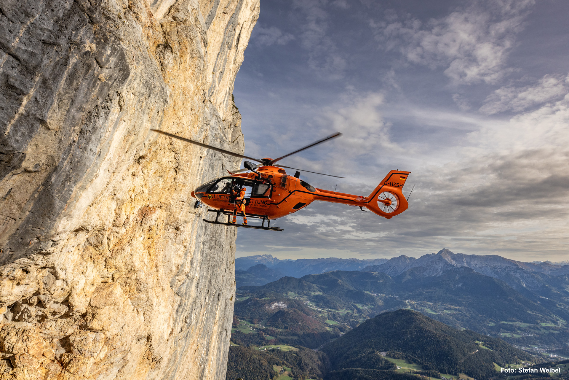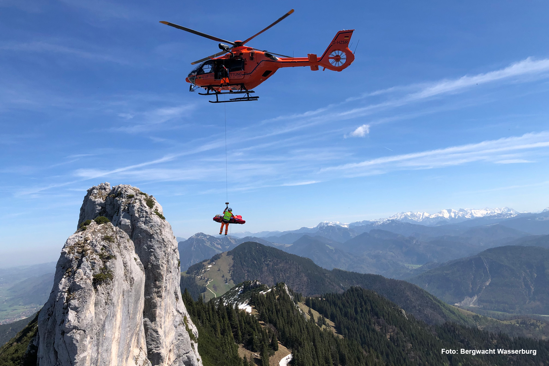 Der orangefarbene Rettungshubschrauber Christoph 14 ist innerhalb weniger Minuten einsatzbereit. Die Crew ist an 365 Tagen im Jahr von Sonnenaufgang bis Sonnenuntergang startklar. An Bord sind drei Profis: ein Pilot der Bundespolizei, ein Notarzt der Notarztgemeinschaft Traunstein und ein Notfallsanitäter/Windenoperator des BRK.
